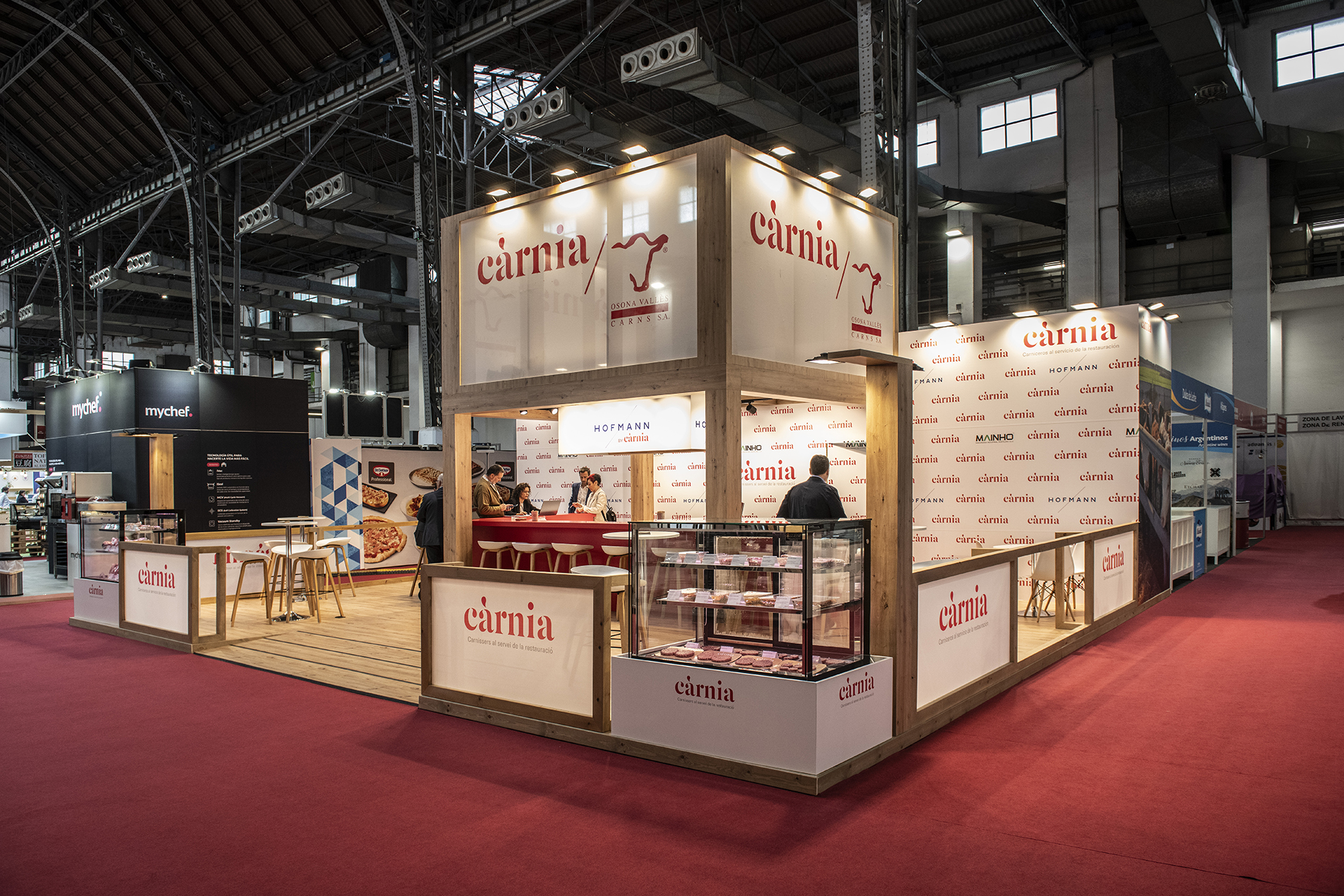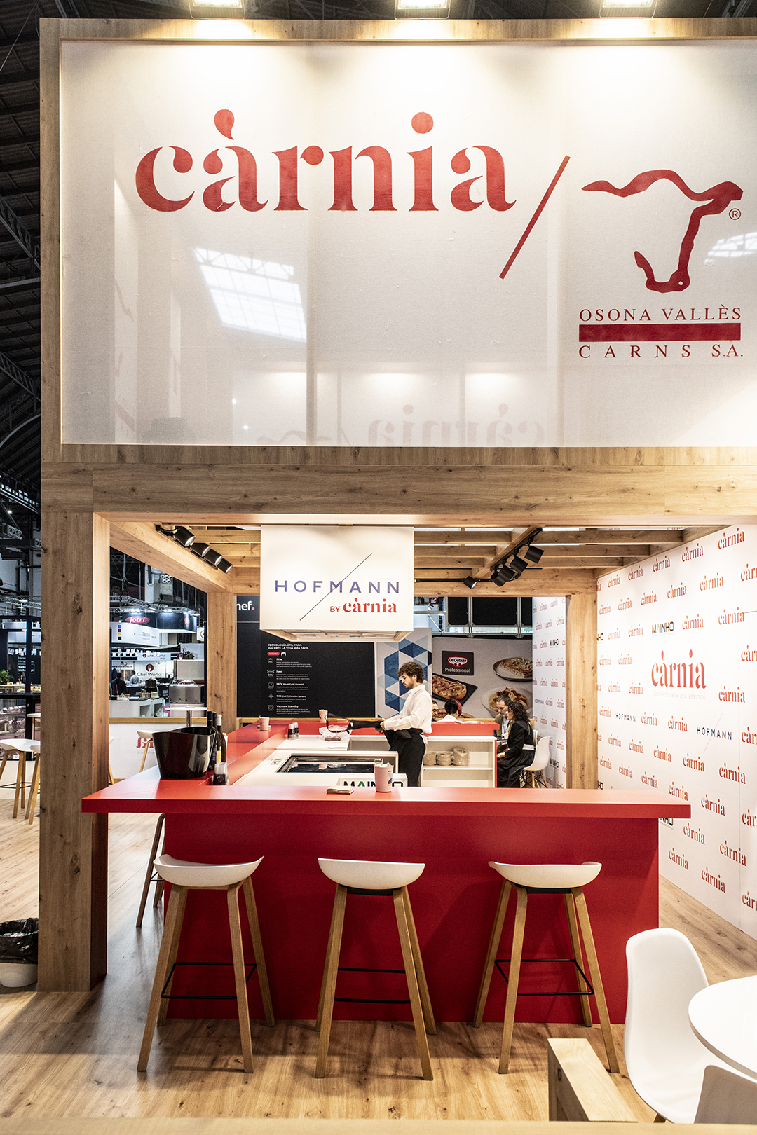 Diseño y construcción de un Stand en el Gastronomic Forum de Barcelona. El concepto de este stand era mostrar un aspecto de empresa cercana y tradicional a la vez que una empresa moderna y renovada. Destacando el rojo corporativo y combinándolo con maderas y telas grafiadas el logotipo de la empresa.
